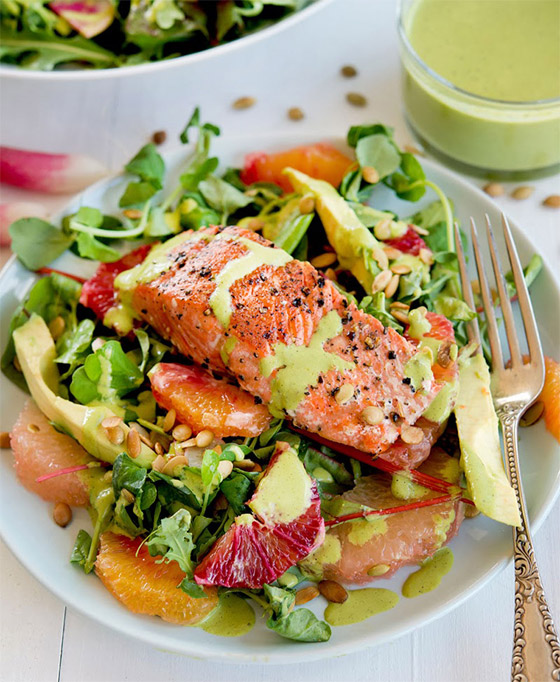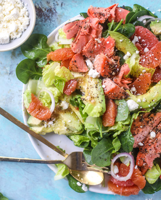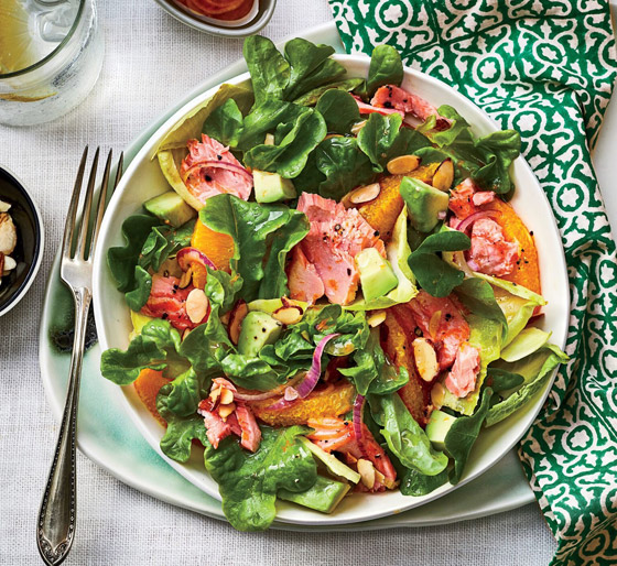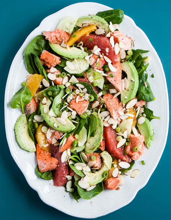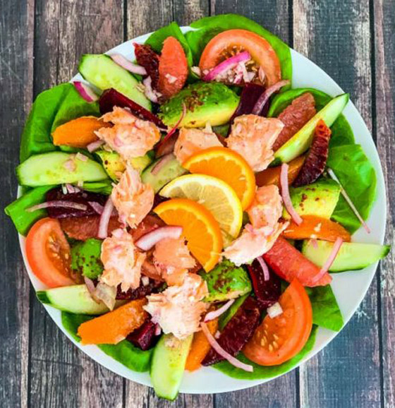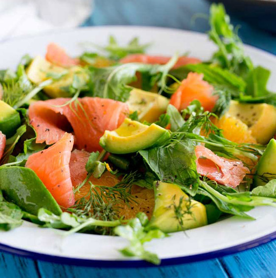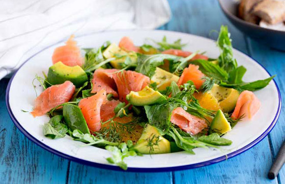 سلطة السلمون مع الأفوكادو والحمضيات للرجيم.. تناولوا وجبة خفيفة، صحية، شهية، وقليلة السعرات الحرارية، وبوقت قصير، أعدوا أطيب سلطات الرجيم مع مطبخ شايف. وقت الطهي: 30 دقيقة.. يكفي ل: 4 أشخاص.