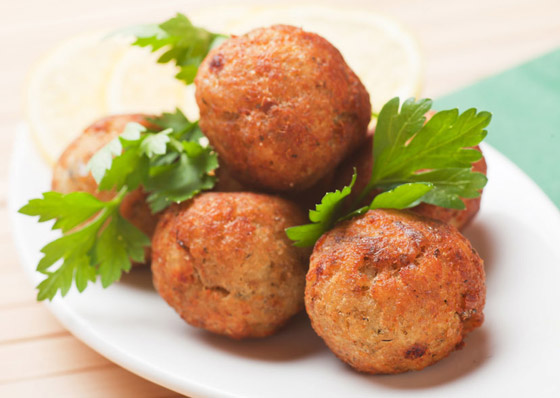 3. اصنعوا من خليط السمك أصابع كفتة متساوية في الحجم أو دائرية، ثم وزعوها فوق البصل في الصينية.