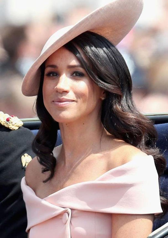 وفي وقت سابق من هذا الشهر، احتفلت العائلة المالكة بعيد ميلاد الملكة إليزابيث الثانية (92)، حيث ارتدت ماركل فستانا مكشوف الكتف صممته، كارولينا هيريرا.