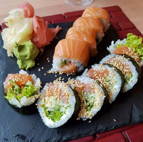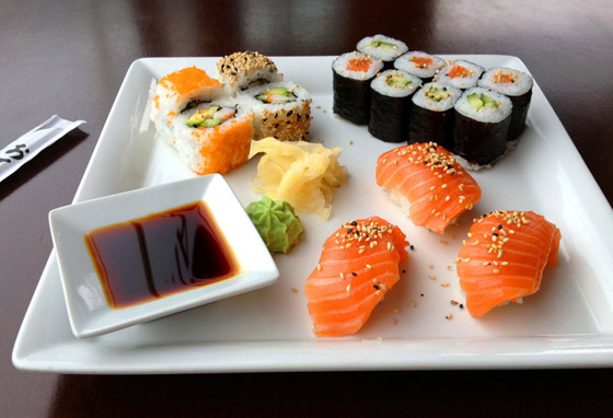 بعض الأرز ومعه بعض السمك النيء أو الروبيان، تلف بقطعة من الأعشاب البحرية، وتغمس بخليط من الصويا والزنجبيل والواسابي الشهير بلسعته الشديدة. ولا ننسى بالطبع العودين الخشبيين لتعيش عالما جديدا من البهجة اليابانية ولكن مهلا... يقال إن أصل السوشي لم يأت من اليابان، بل من جنوب شرق آسيا إلى جنوب الصين ومن هناك إلى اليابان. كانت الأسماك تُلَف بالأرز المتخمر، ومن ثم يتم التخلص من هذا الأرز وتناول الأسماك فقط.