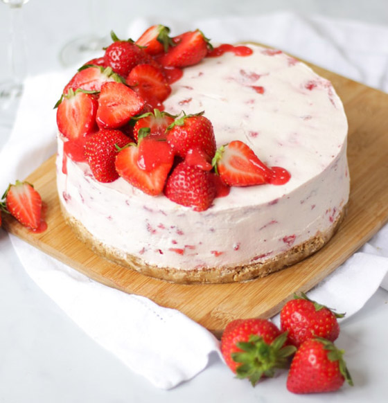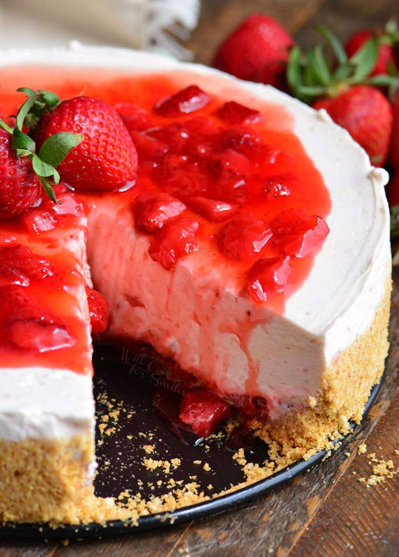 تحضير تشيز كيك الفراولة قد يكون صعباً ومرهقاً لكثرة التفاصيل، كما تحتاج بعض الوصفات لوضعها قليلاً في الفرن ثم وضعها بالثلاجة، لكن لحسن الحظ هناك طريقة لتحضير تشيز كيك الفراولة دون وضعها في الفرن، بل أيضاً دون إضافة بيضة واحدة لمن لا يحب البيض في هذه الحلوى اللذيذة. وإليك أسهل طريقة لتحضير تشيز كيك الفراولة دون إضافة البيض أو وضعها في الفرن.