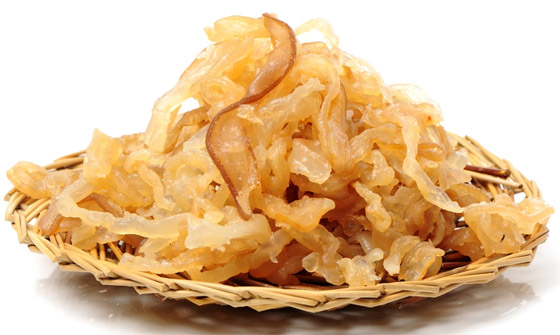 تبدأ عملية إنتاج قنديل البحر المجفف عادةً بإزالة المخالب قبل التجفيف، وعندما ينكمش القنديل بحرارة الغرفة تبدأ عملية المعالجة. إذ يتم فصل وتقطيع بعض الأجزاء المتدلية من الفم ثم يغسل القنديل بمياه البحر قبل قشطه لإزالة الغدد التناسلية والمخاط. وعادةً تتم عملية التجفيف عن طريق رش ملح الطعام مع قليل من الشبة وبيكربونات الصوديوم فوقه مع تصريف المحلول الملحي كل فترة وإعادة رشه بالملح من جديد. وأخيراً، تنكمش قناديل البحر حتى تجف، وتقلب عدة مرات.