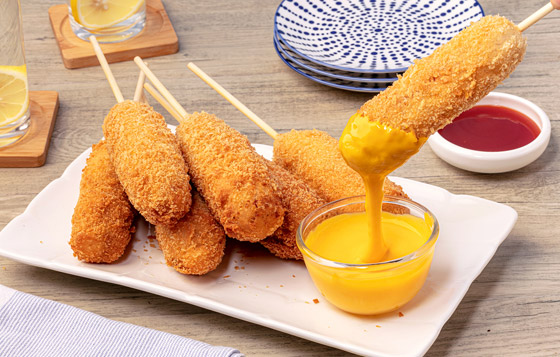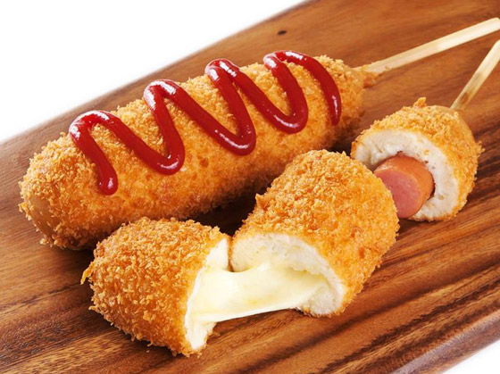 2. احشوا الخبز بخليط الهوت دوغ ولفوه على شكل رول.