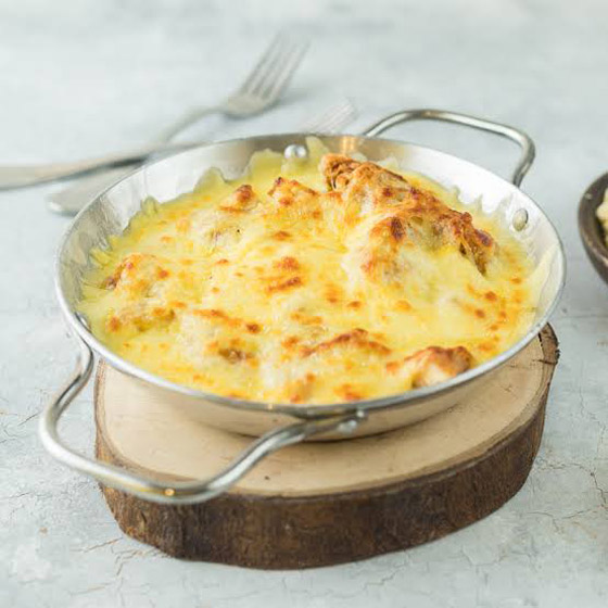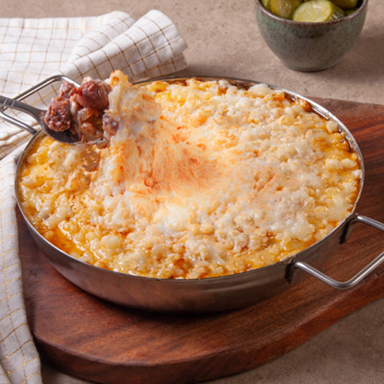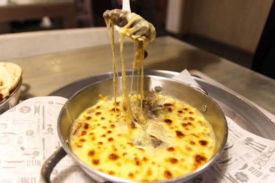 ثم ضعي الجبنة علي وجه السجق في المقلاة و تترك على النار حتي تذوب و تقدم في نفس المقلاة مع خبز طازج.