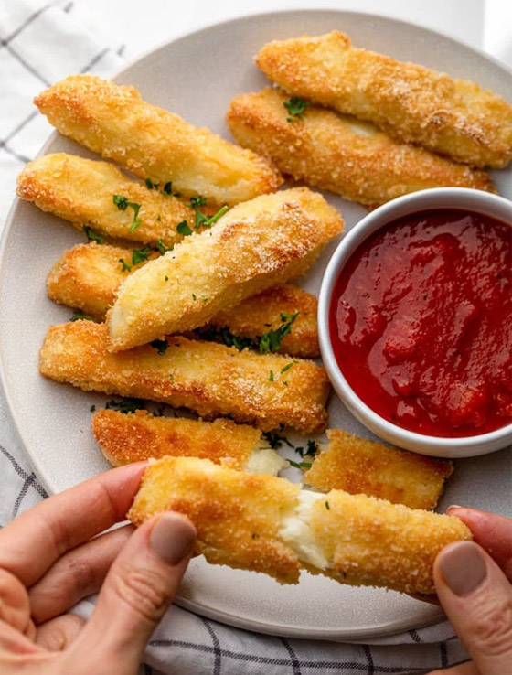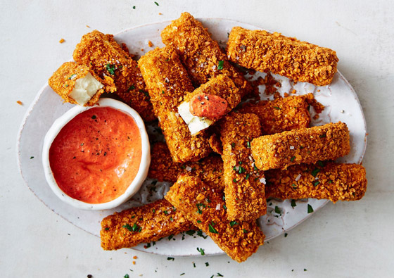 6. صفّوا أصابع الجبن من الزيت، وضعوها في طبق التقديم، ثم قدموها ساخنة إلى جانب الصوص المفضل.