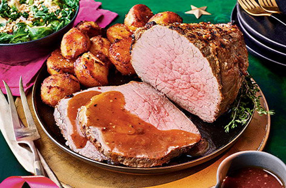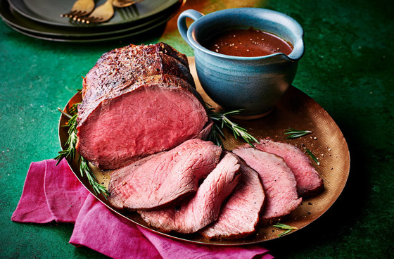 يتميز هذا اللحم البقري المشوي بمذاق خاص للغاية مع صلصة الكشمش الأحمر والخردل، فهو يقدّم نكهة حلوة وحارة. يمكن تقديمه كوجبة غداء رائعة أو في حفل عشاء احتفالي.