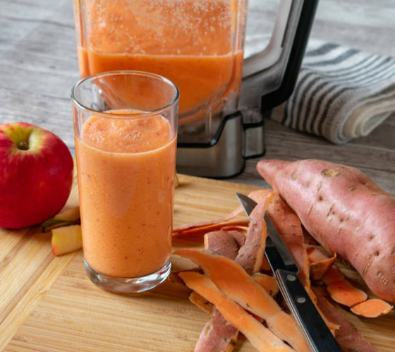 7. البطاطا الحلوة: تعد البطاطا الحلوة المطبوخة طريقة رائعة لإضافة المزيد من الألياف والعناصر الغذائية الهامة مثل البوتاسيوم ومضادات الأكسدة إلى عصيرك. كما أنها تضفي ملمساً ناعماً ودسماً إلى العصير. من الممكن استخدام البطاطا الحلوة المسلوقة أو المحمصة أو المطهية على البخار.