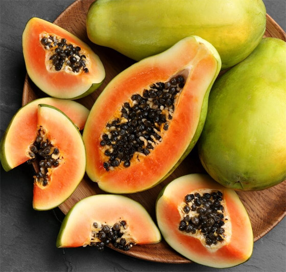 4- البابايا: البابايا هي فاكهة استوائية أخرى غنية بالأنزيمات تساعد على الهضم. إذ تحتوي على غراء يساعد في تكسير البروتينات وتقليل الانتفاخ. كذلك يمكن أن تساعد إضافة البابايا إلى نظامك الغذائي في تخفيف الانزعاج الهضمي وتعزيز الانتظام.