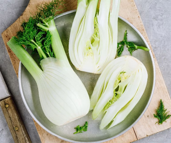 5- الشمر: يستخدم الشمر منذ فترة طويلة كمساعد في الجهاز الهضمي بسبب خصائصه الطاردة للريح، ما يعني أنه يساعد على طرد الغازات من الجهاز الهضمي. ويمكن أن يخفف من الانتفاخ والتشنجات وعسر الهضم. لذا استمتع بالشمر عن طريق دمجه في السلطات أو الشوربات أو عن طريق مضغ البذور بعد الوجبة.