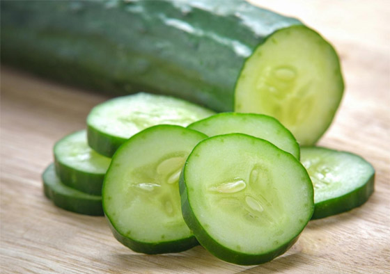 6- الخيار: لا يعتبر الخيار مرطباً فحسب، بل إنه فعال أيضاً في تقليل الانتفاخ. إذ يحتوي على نسبة عالية من الماء وهو غني بالألياف، ما يجعله ممتازاً لتعزيز الهضم الصحي. لذا أضف شرائح الخيار إلى السلطات أو انقعه في الماء للحصول على نكهة منعشة.